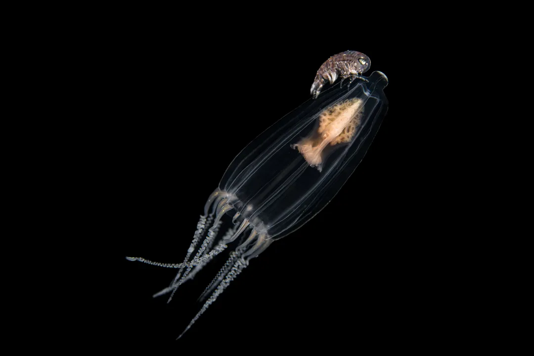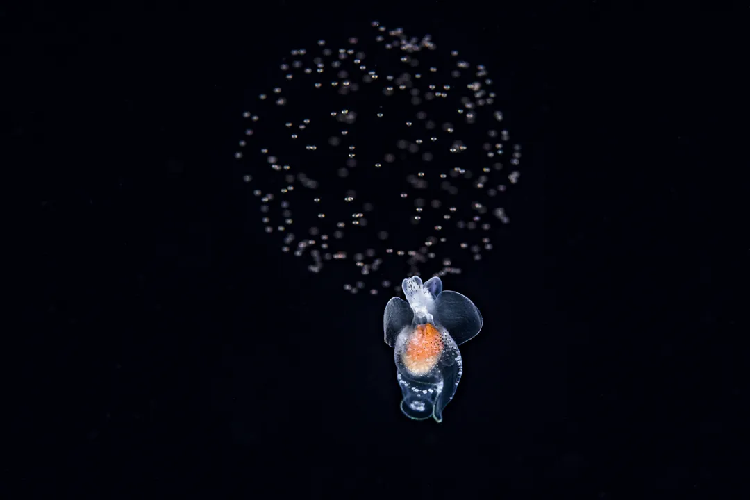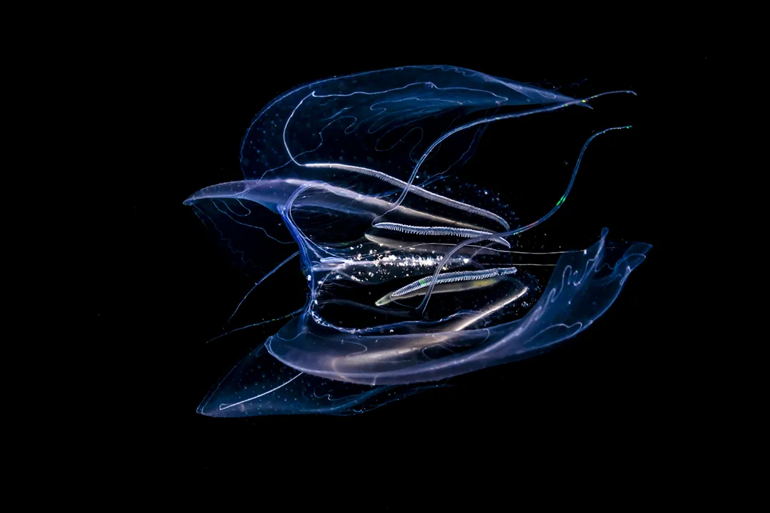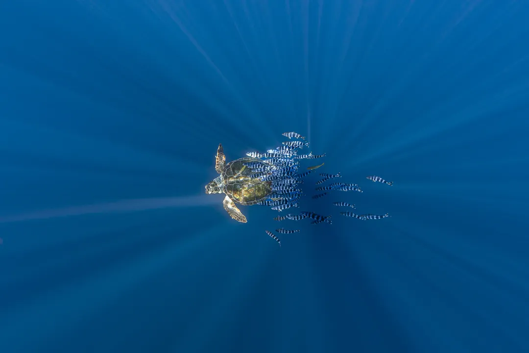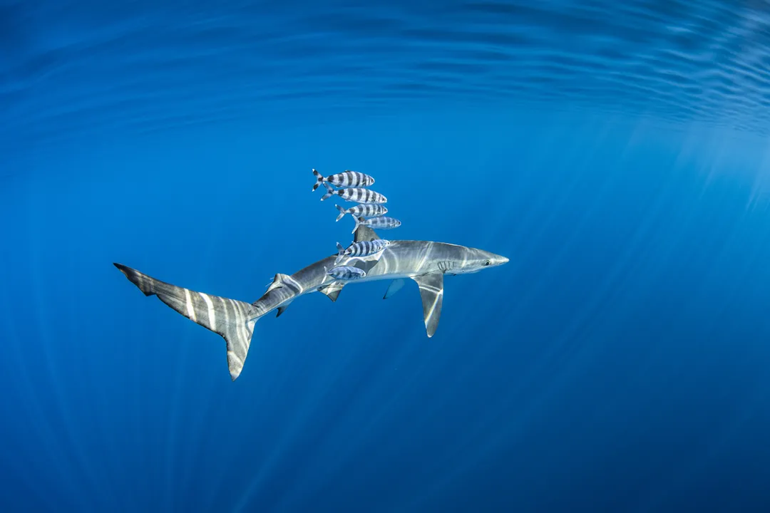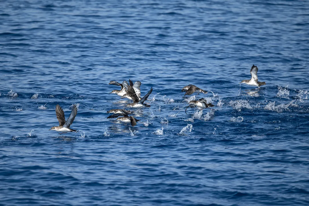 Tout commence avec les plus petits : le phytoplancton, qui capte la lumière du soleil pour produire oxygène et matière organique, donnant vie à l’océan. Il nourrit le zooplancton, lui-même consommé par de petits poissons et crustacés, proies des poissons plus grands, des céphalopodes et des oiseaux marins. Au sommet de cette chaîne se trouvent les grands prédateurs : thons rouges, espadons, dauphins, cachalots ou encore rorquals communs, véritables géants des mers.