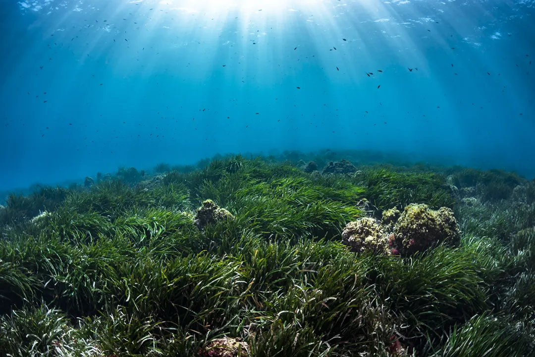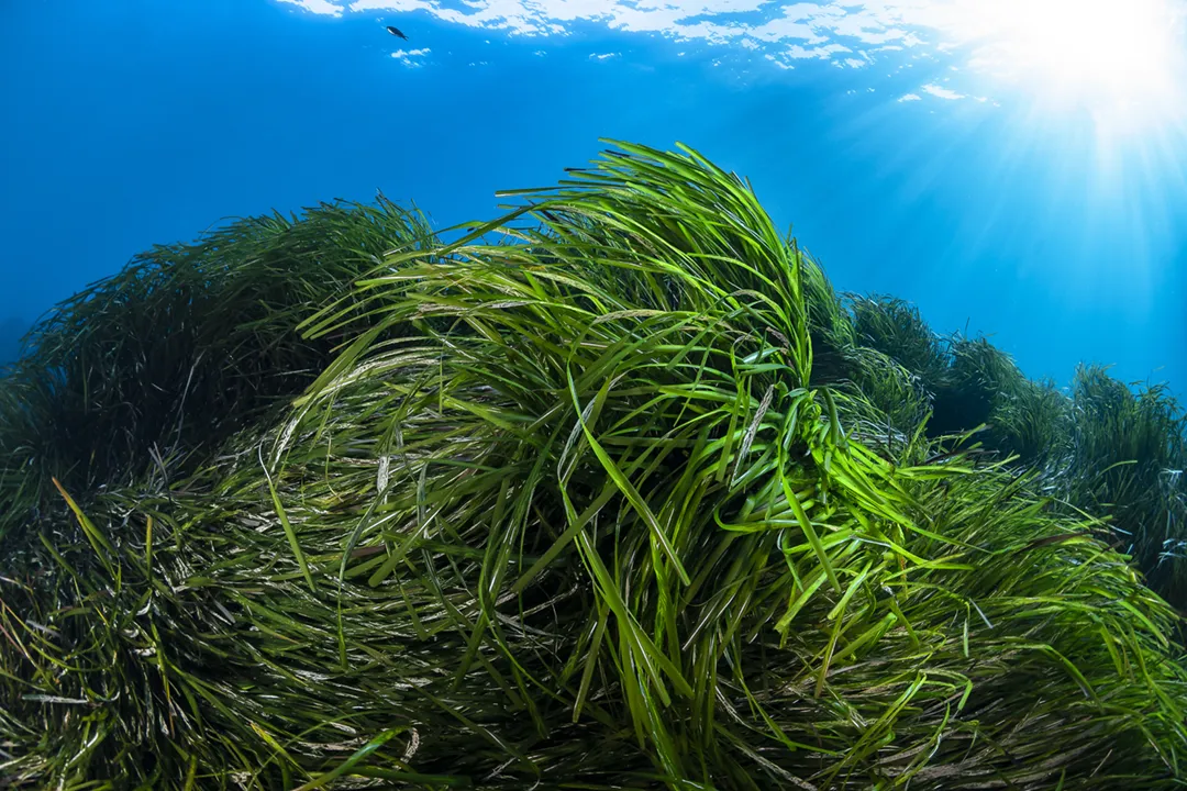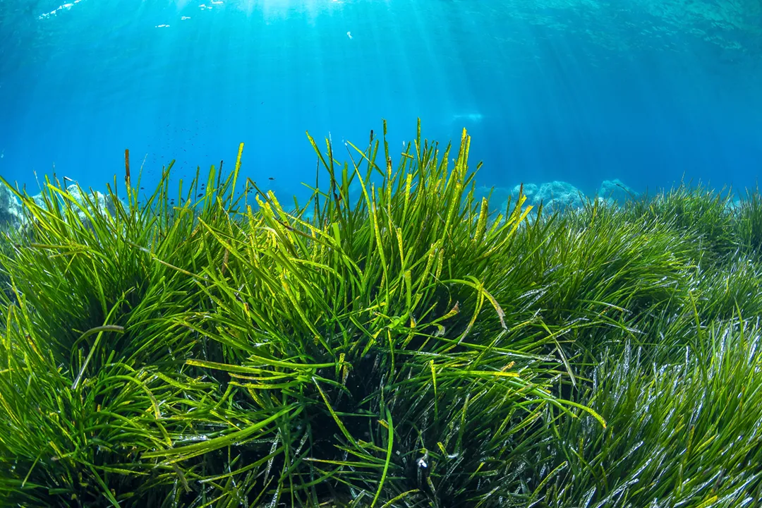 Algues, herbiers de posidonie, producteurs d’oxygène et réservoirs de carbone.